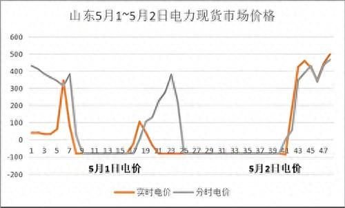 据山东电力交易中心数据,4月29日-5月3日,山东电力现货实时交易累计出现了46次负电价。其中,从5月1日20时至5月2日17时,连续实时现货交易负电价时段长达22个小时。这也使得5月1日全天山东实时现货交易电价均价成为负数,为-13.02元/兆瓦时。